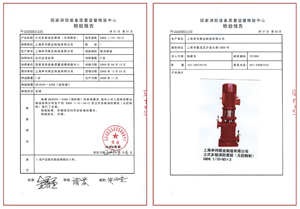 國家消防裝備檢驗報告