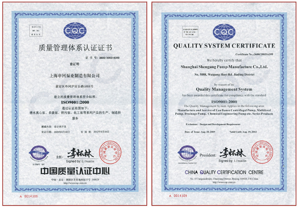 質量管理體系認證證書