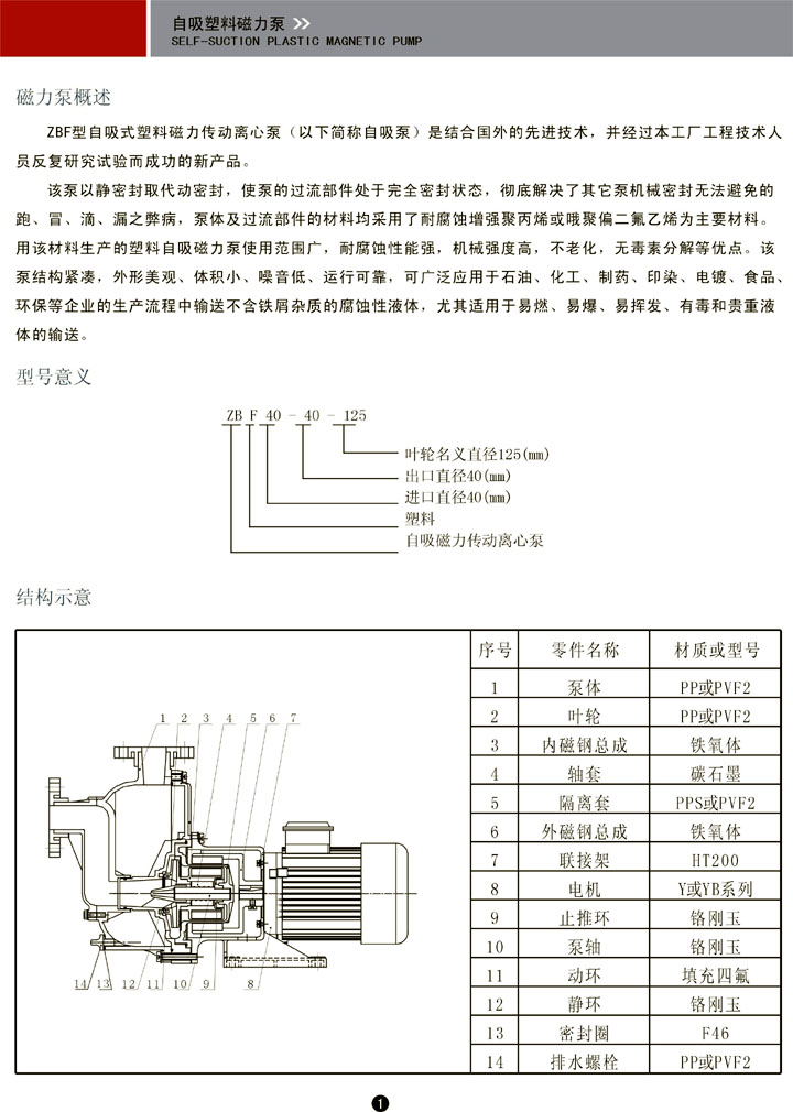ZBF型自吸塑料磁力泵