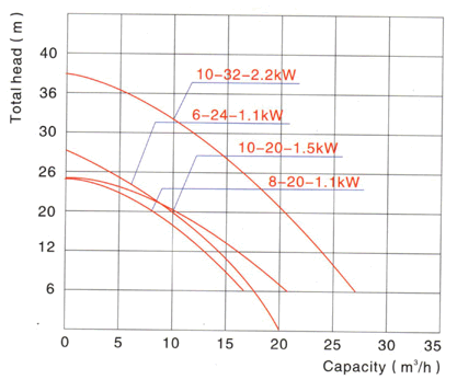 型號(hào) 揚(yáng)程(m) 流量(m3/h) 電壓、頻率(V、Hz) 功率(kw/HP) 配管內(nèi)徑(mm) 外形尺寸(cm) 重量(kg)