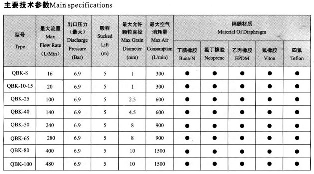 QBK氣動(dòng)隔膜泵是我公司開發(fā)的第三代氣動(dòng)隔膜泵,具有使用壽命長,不會(huì)停頓等優(yōu)點(diǎn),它既能抽送流動(dòng)的液體,又能輸送一些不易流動(dòng)的介質(zhì),具有自吸泵、潛水泵、屏蔽泵、泥漿泵和雜質(zhì)泵等輸送機(jī)械的許多優(yōu)點(diǎn)。