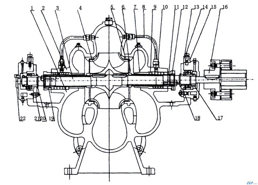 泵主要零件有:泵體、泵蓋、葉輪、軸、雙吸密封環(huán)、軸套等。
